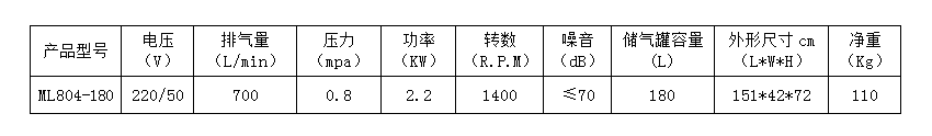 臺冠無油空氣壓縮機,簡稱空壓機,是工業現代化的產物,ML804-180壓縮機用途非常廣泛,主要表現在用于輪胎充氣、噴漆、潛艇沉浮、沉船打撈、海底石油勘探、氣墊船、食品、制藥工業,利用壓縮空氣攪拌漿液、高壓空氣爆破采煤等等。
